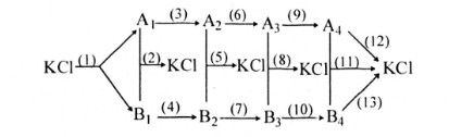 Chọn các chất từ A1 đến A4 và B1 đến B4 thích hợp để hoàn thành chuỗi phản ứng sau: