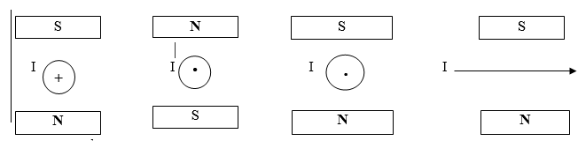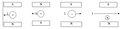 b) Vẽ lực điện từ tác dụng lên dây dẫn hoặc nêu phương và chiều của lực điện từ ở trong các hình sau:
