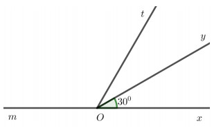 Trên cùng một nửa mặt phẳng bờ chứa tia Ox, vẽ tia Oy và Ot sao cho: góc \(xOy = {30^o}\); góc \(xOt = {60^o}\).