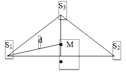 Cho hai nguồn sóng kết hợp S1 , S2 có phương trình u1 = u2 = 2acos2ptt, bước sóng l, khoảng cách S1S2 = 10l = 12 cm. Nếu đặt nguồn phát sóng S3 vào hệ trên có phương trình u3 = acos2ptt , trên đường trung trực của S1S2 sao cho tam giác S1S2 S3 vuông. Tại M cách O là trung điểm S1S2 1 đoạn ngắn nhất bằng bao nhiêu dao động với biên độ 5a: