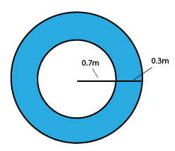 Miệng giếng nước là một hình tròn có bán kính 0,7m. Người ta xây thành giếng rộng 0,3m bao quanh miệng giếng. Tính diện tích của thành giếng đó.