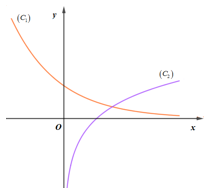 Cho hai đồ thị hàm số \(y = {a^x}\,\,\left( {{C_1}} \right)\) và \(y = {\log _b}x\,\,\left( {{C_2}}