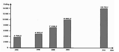 Biểu đồ giá trị sản xuất công nghiệp của Bắc Trung Bộ giai đoạn 1995 - 2014