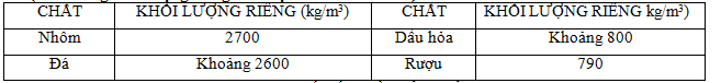 ( Cho bảng khối lượng riêng của một số chất như sau )