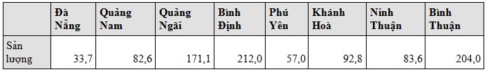 Sản lượng thủy sản khai thác của các tỉnh Duyên hải Nam Trung Bộ năm 2016