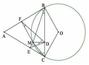 Cho góc \(\angle xAy = {60^0}\) và \((O)\) là đường tròn tiếp xúc với tia \(Ax\) tại \(B\) và tiếp xúc với tia \(Ay\) tại \(C\). Trên cung nhỏ \(BC\) của đường tròn \((O)\) lấy điểm \(M\) và gọi \(D,\,\,E,\,\,F\) lần lượt là hình chiếu vuông góc của \(M\) trên \(BC,\,\,CA,\,\,AB\).