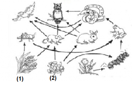Hình bên mô tả lưới thức ăn của một quần xã sinh vật đồng cỏ.