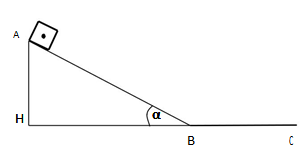 Vật được thả trượt trên mặt phẳng nghiêng dài AB = 2,5m, góc nghiêng α = 300 như hình vẽ, có hệ số ma sát µ = 0,2. Cho g = 10m/s2. Tính vận tốc vật đạt được ở chân mặt phẳng nghiêng và thời gian vật đi hết mặt phẳng nghiêng