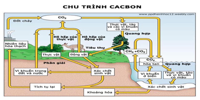 Cho chu trình sinh địa hóa của các nguyên tố cacbon.