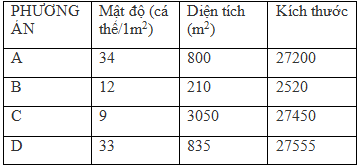 Có 4 quần thể của cùng một loài sống ở 4 môi trường khác nhau. Quần thể sống ở môi trường nào sau đây có kích thước lớn nhất ?