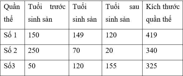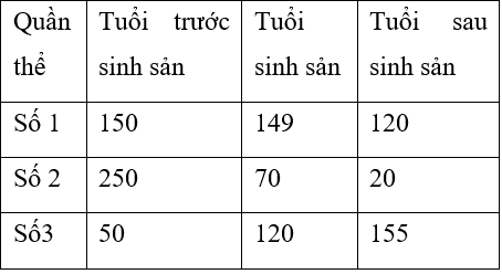 Trong 3 hồ cá tự nhiên, xét 3 quần thể của cùng một loài, số lượng cá thể của mỗi nhóm tuổi ở mỗi quần thể như sau: