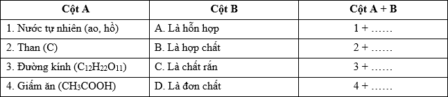 Hãy ghép câu ở cột A với cột B sao cho đúng tính chất của chất vào cột