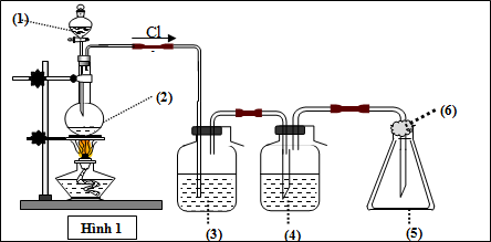 Mô hình điều chế khí clo trong phòng thí nghiệm được cho như hình vẽ bên (Hình 1). Quy trình