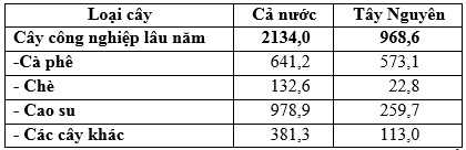 Cho bảng số liệu sau: Diện tích gieo trồng cây công nghiệp lâu năm của cả nước và Tây Nguyên