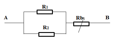 Mắc R1 = 10 song song với R2 = 40 rồi mắc nối tiếp với một biến trở Rb vào 2 điểm có hiệu điện thế không đổi U = 12 V.