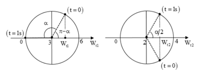 - Hai vật cùng tần số nên cùng chu kỳ dao động. Sau t = 1s góc quay được của hai dao động như nhau. Dao động 1 ở vị trí có thế năng bằng 0