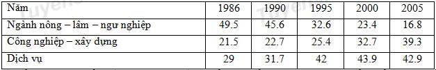 Cho bảng số liệu sau: Chuyển dịch cơ cấu kinh tế theo ngành ở Đồng bằng sông Hồng (Đơn
