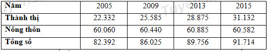 Cho bảng số liệu sau: Dân số Việt Nam thời kì 2005 – 2015 (Đơn vị: nghìn người) Từ bảng