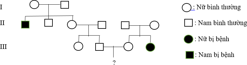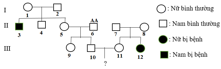 Cho sơ đồ phả hệ mô tả sự di truyền một bệnh ở người do một trong hai alen của một gen quy định, alen trội là trội hoàn toàn.
