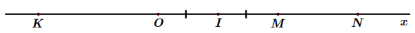 Trên tia \({\rm{Ox}}\) lấy hai điểm \(M\) và \(N\) sao cho \(OM = 3cm;\,ON = 5cm.\) \(I\) là trung