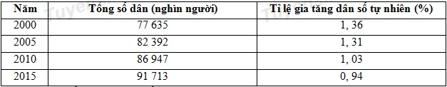 Cho bảng số liệu: Số dân và tỉ lệ gia tăng dân số tự nhiên của nước ta qua các