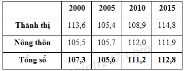 Ti số giới tính của trẻ em mới sinh nước ta phân theo thành thị nông thôn giai đoạn 2000 – 2015
