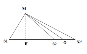 Vì nguồn chạy từ S2 đến S2’ nên \(M{{S}_{2}}-M{{S}_{1}}<k\lambda <M{{S}_{2}}'-M{{S}_{1}}\)