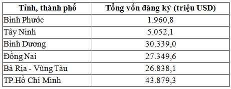 Vốn đầu tư trực tiếp của nước ngoài được cấp giấy phép của các tỉnh thành phố vùng Đông Nam Bộ (lũy kế đến năm 2017)