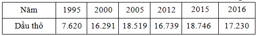 Cho bảng số liệu: Sản lượng dầu thô khai thác của Đông Nam Bộ qua các năm (Đơn vị: nghìn
