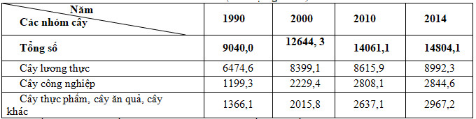 DIỆN TÍCH GIEO TRỒNG PHÂN THEO NHÓM CÂY CỦA NƯỚC TA QUA CÁC NĂM