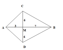 Trên mặt nước có hai nguồn sóng giống nhau A và B cùng pha, cách nhau AB = 10cm đang dao động vuông góc với mặt nước tạo ra sóng có bước sóng λ = 0,5cm. C và D là hai điểm khác nhau trên mặt nước, CD vuông góc với AB tại M sao cho MA = 3cm ; MC = MD = 6cm. Số điểm dao động cực đại trên đường thẳng đi qua hai điểm C và D là