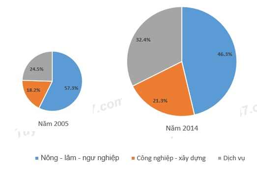 Cơ cấu sử dụng lao động của nước ta phân theo các ngành kinh tế năm 2005 và 2014