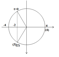 Biểu diễn chuyển động của vật bằng đường tròn có bán kính là biên độ 4cm.