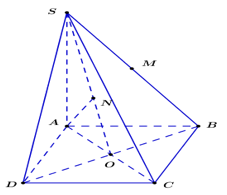 Cho hình chóp SABCD, có đáy ABCD là hình vuông tâm O, cạnh bên vuông góc với mặt đáy. Gọi M là trung điểm của SA, N là hình chiếu vuông góc của A lên SO. Mệnh đề nào sau đây đúng?