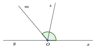 Cho hai tia \({\rm{O}}x\) và \({\rm{Oy}}\) đối nhau. Vẽ tia \(Oz\) sao cho góc \(\widehat {xOz}\) bằng