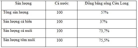 Sản lượng thủy sản của cả nước và ĐBSCL năm 2012