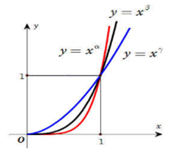 Cho đồ thị hàm số \(y = {x^\alpha },\;y = {x^\beta },\;y = {x^\gamma }\) trên khoảng \(\left( {0; + \infty }