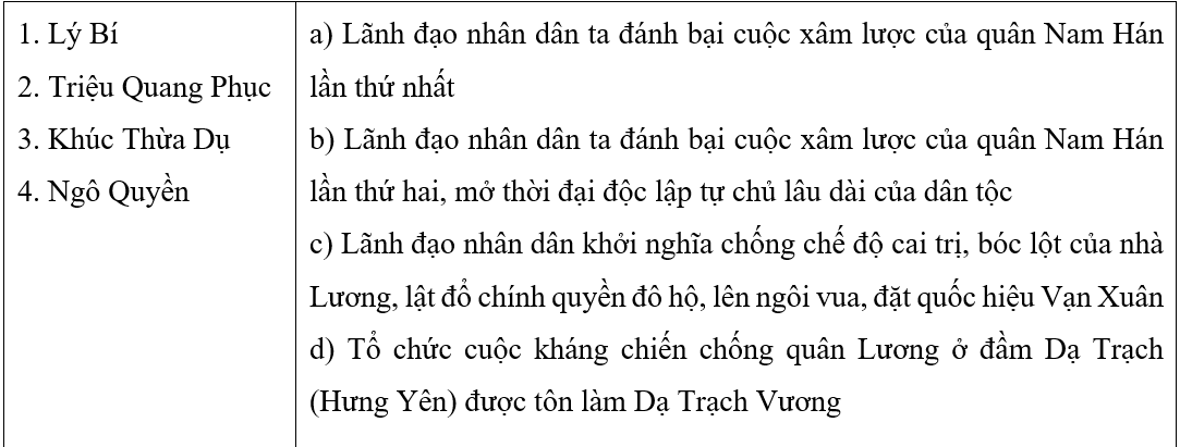 Hãy kết nối thông tin ở cột bên trái với cột bên phải sao cho phù hợp