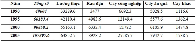 Từ bảng số liệu trên, cho biết nhận xét không chính xác về giá trị sản xuất ngành trồng trọt nước ta là: