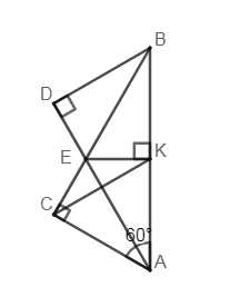 Cho \(\Delta ABC\) vuông tại \(C\) có \(\angle A = {60^0}\). Tia phân giác \(\angle BAC\) cắt \(BC\) ở \(E\). Kẻ \(EK\) vuông góc với \(AB\) ở \(K\). Kẻ \(BD\) vuông góc với \(AE\) ở \(D\).