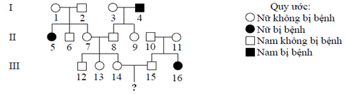 Sơ đồ phả hệ dưới đây mô tả sự di truyền của một bệnh ở người so một trong hai alen của một gen quy đinh