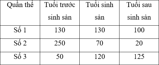 Trong ba hồ cá tự nhiên, xét 3 quần thể của cùng một loài, số lượng cá thể của mỗi nhóm tuổi ở mooix quần thể như sau: