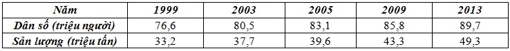 Dân số và sản lượng lương thực nước ta giai đoạn 1999 – 2013