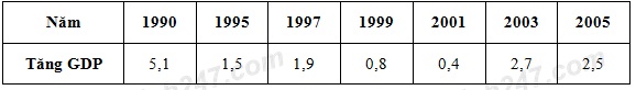 Cho bảng số liệu sau: Tốc độ tăng trưởng GDP cúa Nhật Bản, thời kì 1990 – 2005 (Đơn