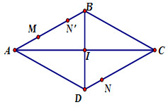 - Lấy \(N'\) đối xứng với \(N\) qua \(I\) thì \(N' \in AB\).