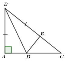Cho tam giác \(ABC\) vuông tại A. Tia phân giác của \(\angle ABC\) cắt cạnh \(AC\) tại \(D\) . Trên cạnh \(BC\) lấy điểm \(E\) sao cho \(BE = BA\)