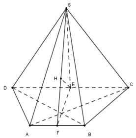 + Xác định đường cao của hình chóp bằng cách ta xác định \(E\) là tâm đường tròn ngoại tiếp đa giác đáy , từ gt suy ra \(SE \bot \left( {ABCD} \right)\)