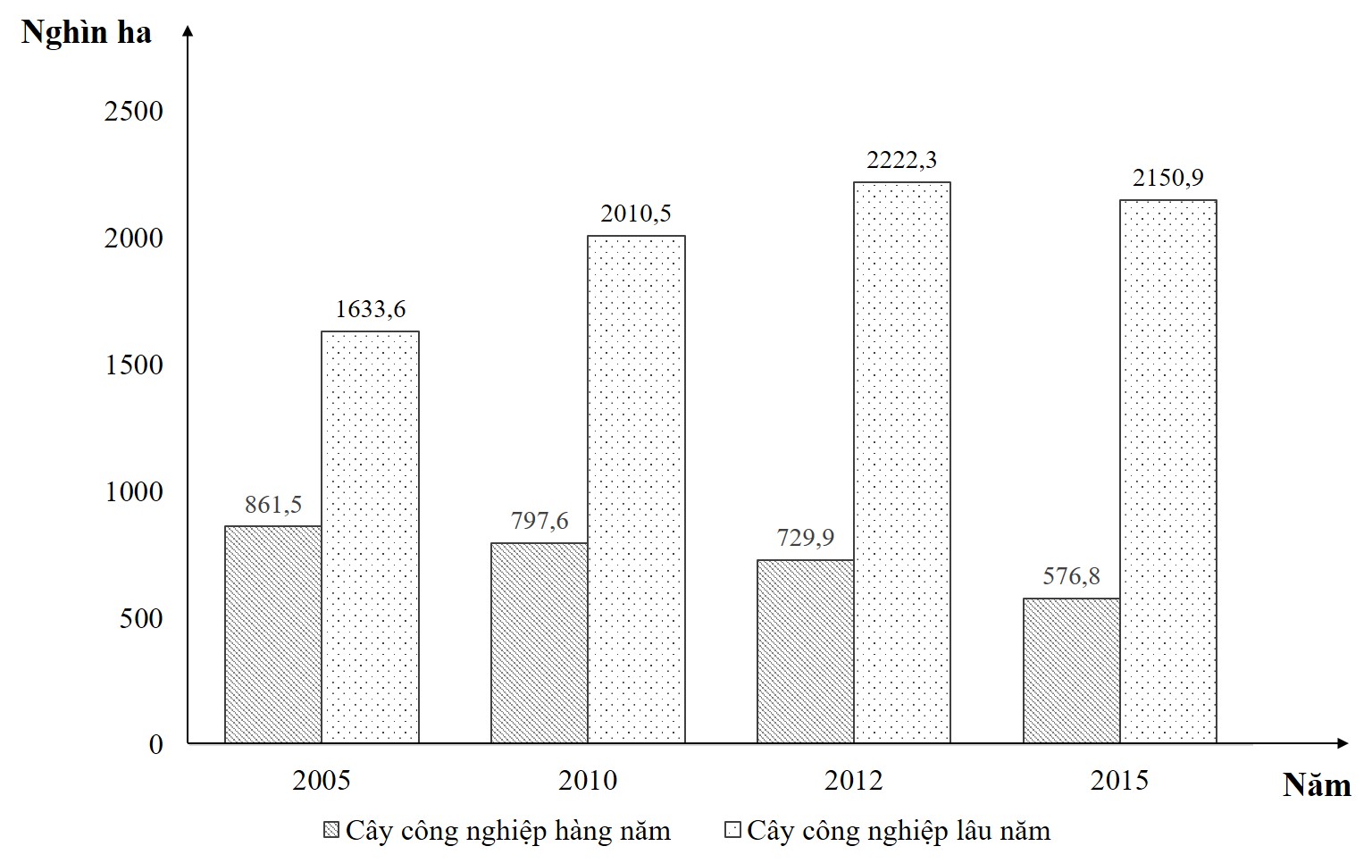 Cho biểu đồ sau : DIỆN TÍCH CÂY CÔNG NGHIỆP CỦA NƯỚC TA GIAI ĐOẠN 2005 – 2015 Căn cứ vào