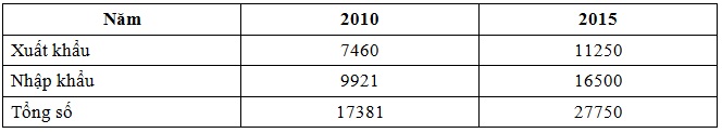 Cho bảng số liệu sau: GIÁ TRỊ XUẤT KHẨU, NHẬP KHẨU DỊCH VỤ Ở NƯỚC TA, NĂM 2010 VÀ