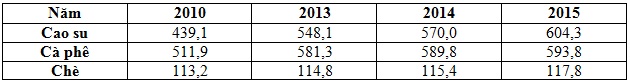 Căn cứ vào bảng số liệu, cho biết nhận xét nào sau đây không đúng về diện tích gieo trồng một số cây lâu năm của nước ta, giai đoạn 2010-2015?